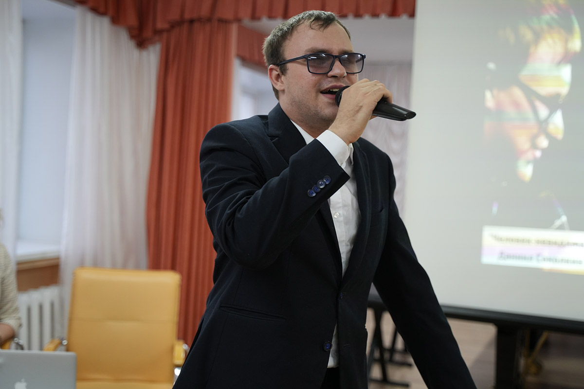 Главным героем урока толерантности стал Даниил Соколкин - талантливый незрячий вокалист, автор песен, педагог дополнительного образования, инструктор по ориентированию незрячих в городском пространстве, учредитель общественного благотворительного фонда по социализации незрячих и слабовидящих "Луч надежды".