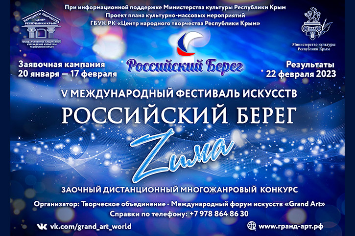 С 20 декабря по 17 февраля можно подать заявки на дистанционный V Международный онлайн-конкурс "Российский Берег. Zима". Участвовать в нем можно по направлениям "Хореографическое искусство", "Вокальное искусство", "Музыкально-инструментальное искусство", "Театральное искусство", "Художественное слово", "Сценарно-режиссёрское творчество" и "Художественно-прикладное творчество".
