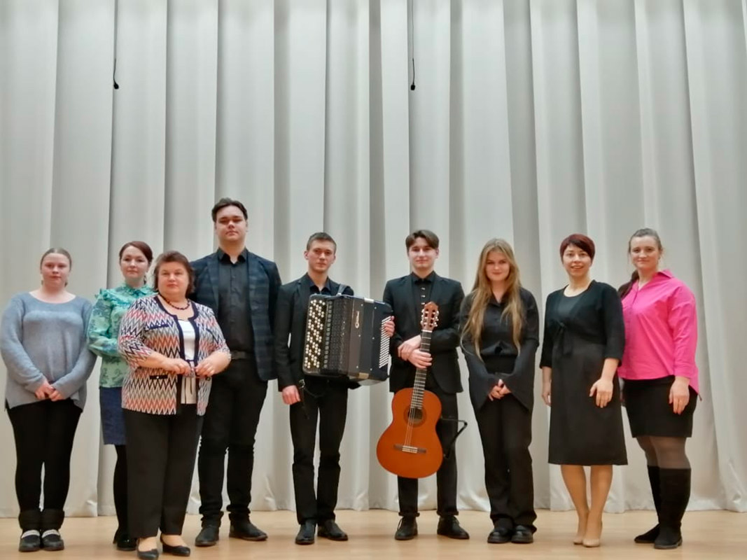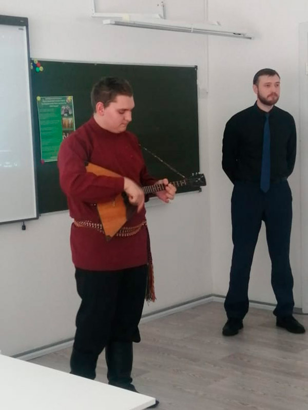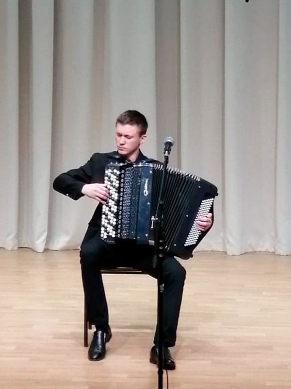 С концертными номерами выступили студенты Илья Леоненко, Павел Сторож и Никита Усов. Они продемонстрировали зрителям искусство игры на гитаре, баяне и кларнете.