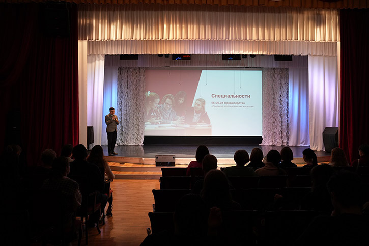 Профориентационное мероприятие состоялось в концертном зале имени Александра Иванова. В нем приняли участие представители ВУЗа и студенты старших курсов НОККиИ.