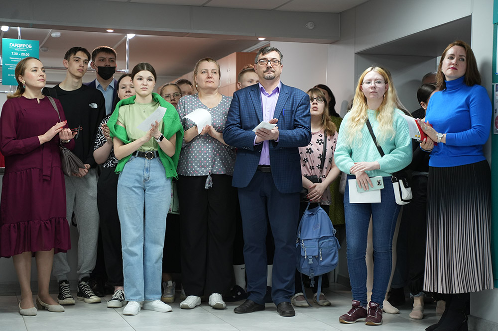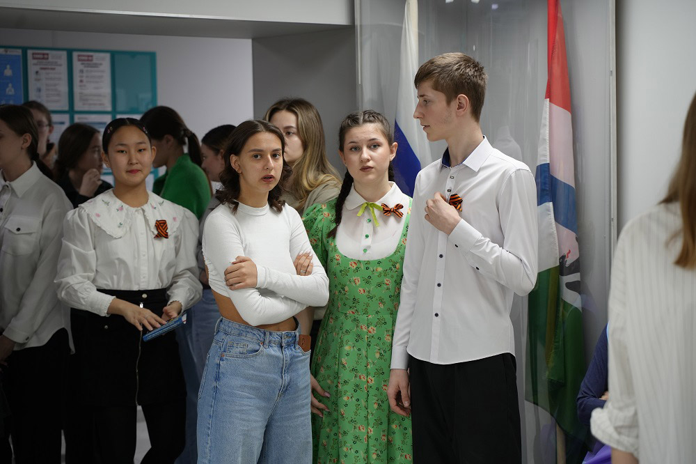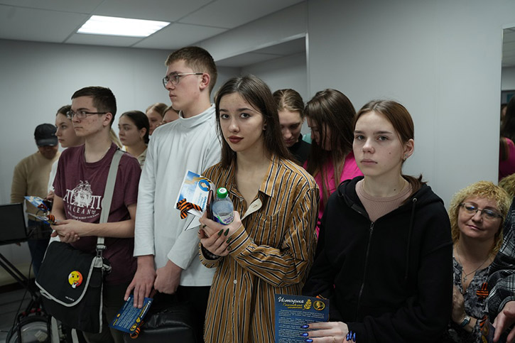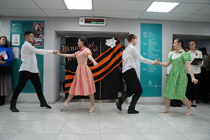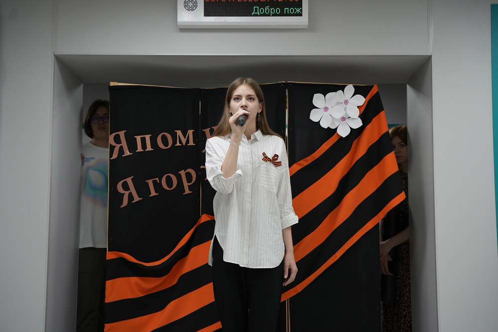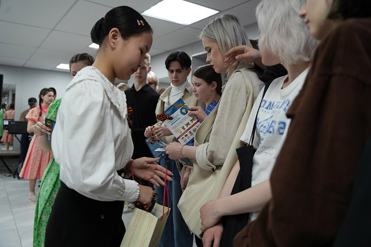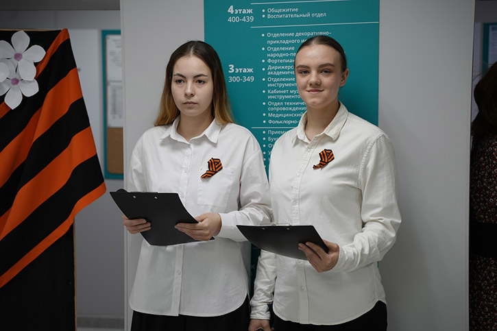 В ходе акции в НОККиИ состоялась традиционная минута молчания. Участникам раздали памятки по правилам ношения Георгиевской ленточки и обращения с ней.