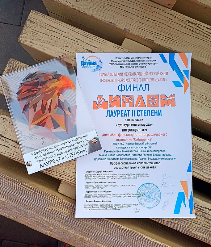 В Чите завершился II Забайкальский Международный молодёжный фестиваль - конкурс культурного наследия "ДАУРИЯ". Студенты фольклорно-этнографического отделения НОККиИ стали Лауреатами II степени в финале конкурса в номинации "Культура моего народа".