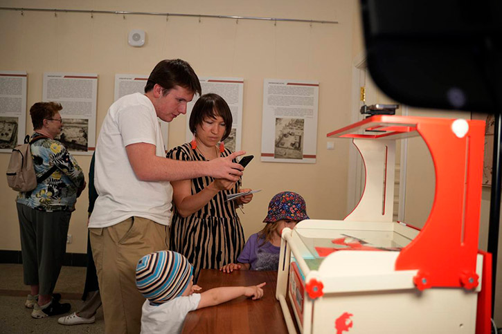 Здесь все желающие могли совершить виртуальную экскурсию по Краеведческому музею города Новосибирска. Для более глубокого погружения, в экскурсии был задействован аудио гид, который рассказывал об экспонатах.
