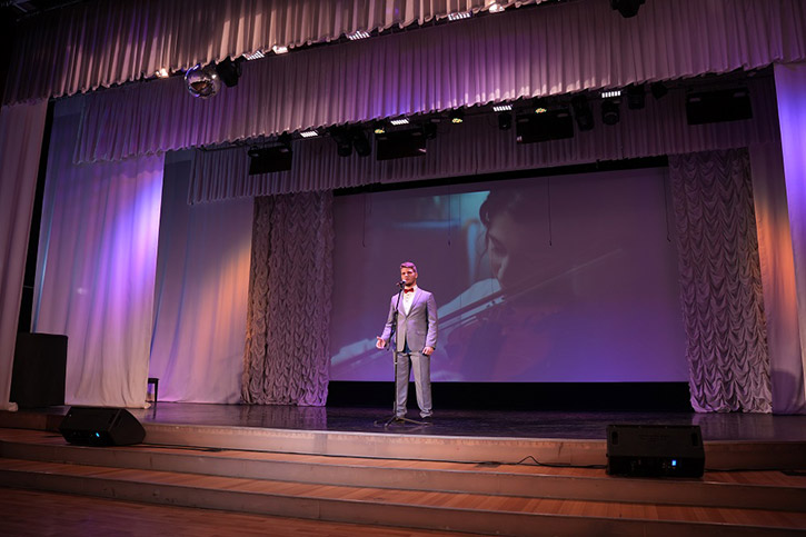 В свою очередь с поздравительными концертными номерами выступили учащиеся колледжа. Знаменитый советский хит "Я люблю тебя жизнь" исполнил Михаил Тиличенко, а Илья Журавлев спел хорошо известную большинству новосибирцев песню: "В Новосибирске не разводятся мосты".