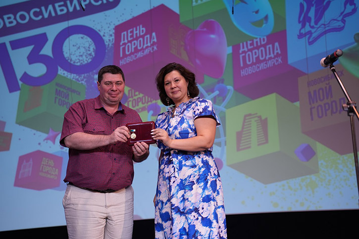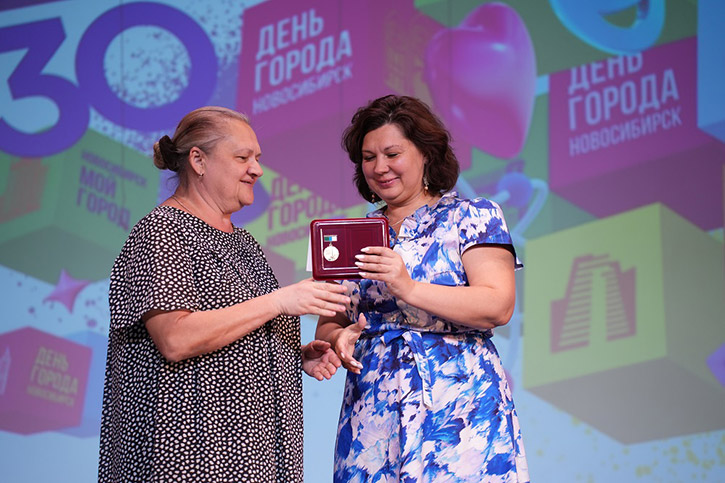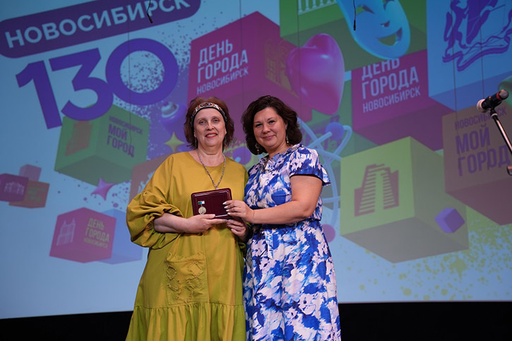 Памятные знаки, более чем 30 сотрудникам Новосибирского областного колледжа культуры и искусств вручила заместитель главы Администрации Ленинского района Новосибирска по организационной работе - Анжела Данилова.
