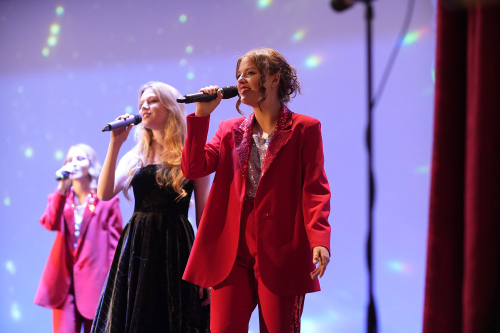 Наши артисты представили собравшимся в зале яркое представление с вокальными, танцевальными и инструментальными номерами. В большинстве номеров вместе со своими студентами участвовали и их педагоги-наставники. Прозвучали поздравления в адрес педагогов-ветеранов, а в конце мероприятия отдельные поздравления получили и молодые наставники-педагоги НОККиИ.