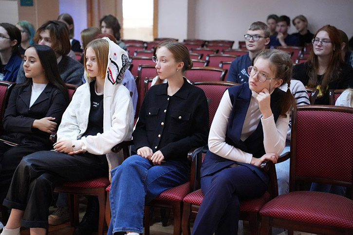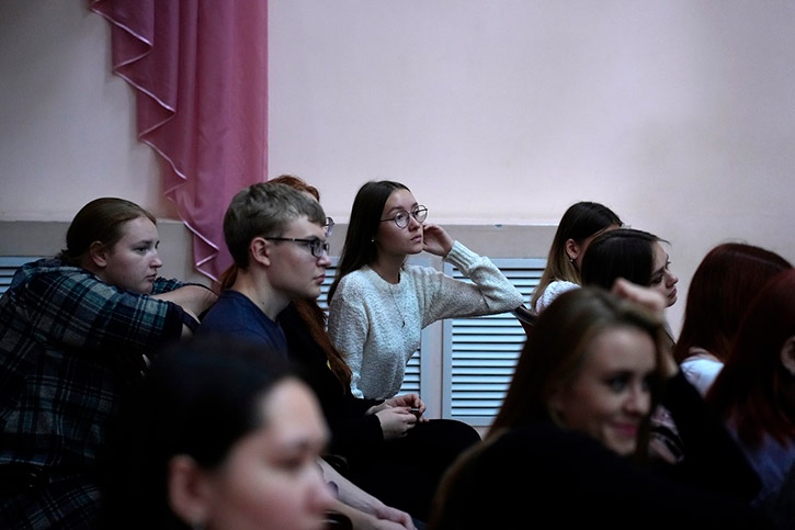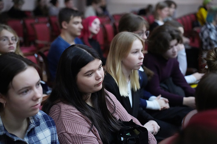 Студенты и преподаватели колледжа смогли пообщаться с писателем в концертном зале имени Александра Иванова. Встреча была организована библиотекой колледжа.
