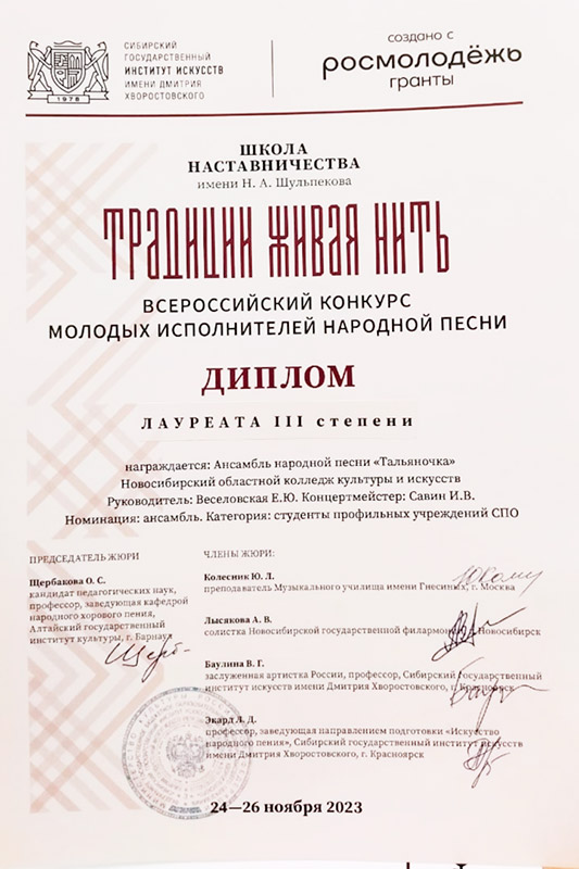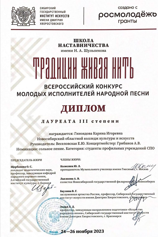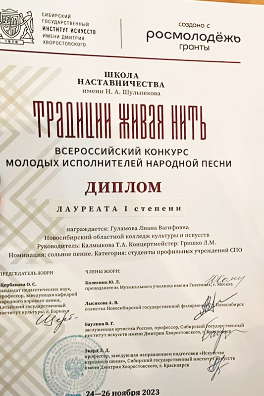 В острой конкурентной борьбе артистам отделения народно-певческого искусства удалось завоевать сразу несколько дипломов: