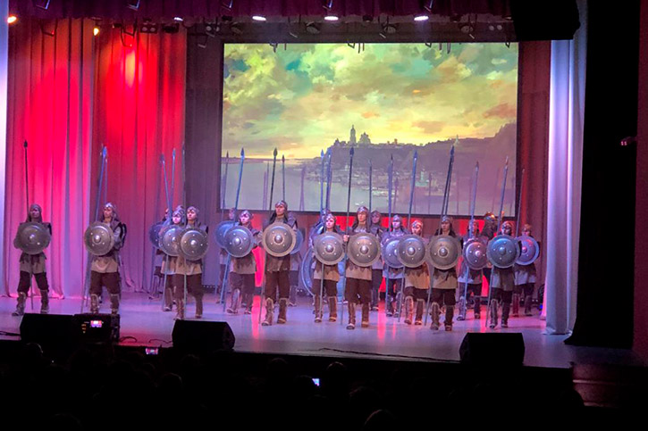 Одним из самых зрелищных номеров безусловно стала пронзительная и впечатляющая хореографическая композиция "Ермак" в исполнении ансамбля народного танца "Русичи", который совсем недавно завоевал золото Вторых открытых молодежных Арктических Дельфийских игр. И это был не единственный номер с которым "Русичи" и другие танцевальные коллективы появились на сцене.