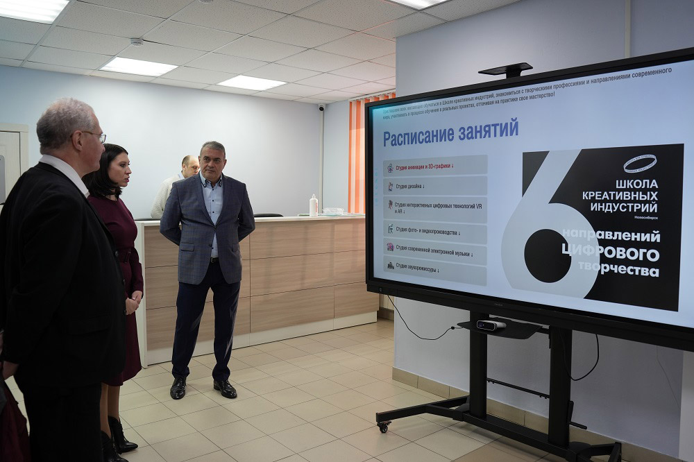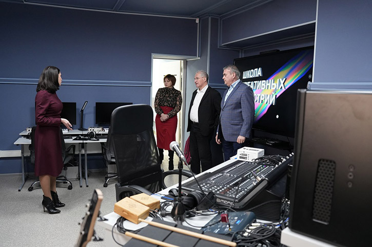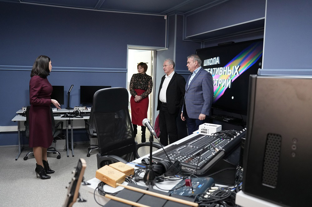 После рабочей встречи с директором колледжа Аркадием Козиоровым и другими представителями администрации НОККиИ гость изучил потенциал "Школы креативных индустрий". Ему продемонстрировали современное оборудование студий, а также работы, которые создали студийцы под руководством наставников.