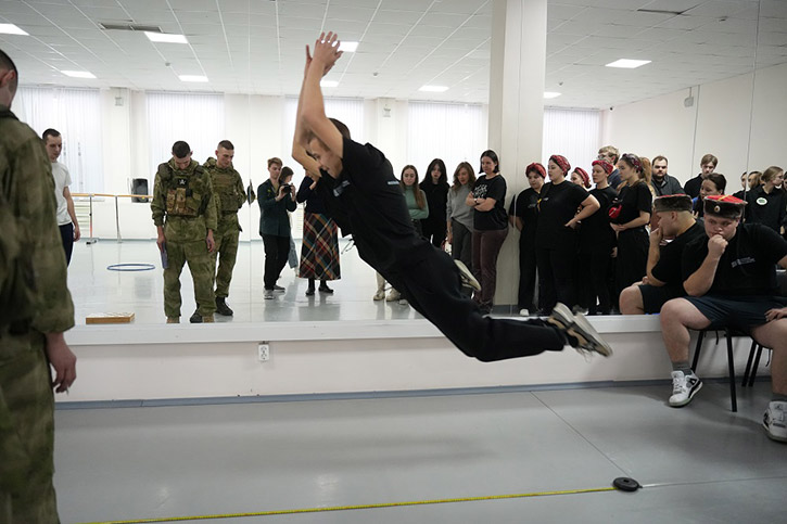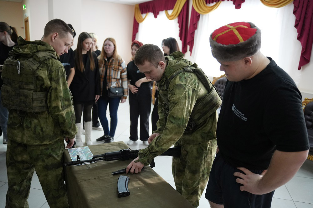 Приятным сюрпризом для студентов колледжа был показательный номер от курсантов НВИ.