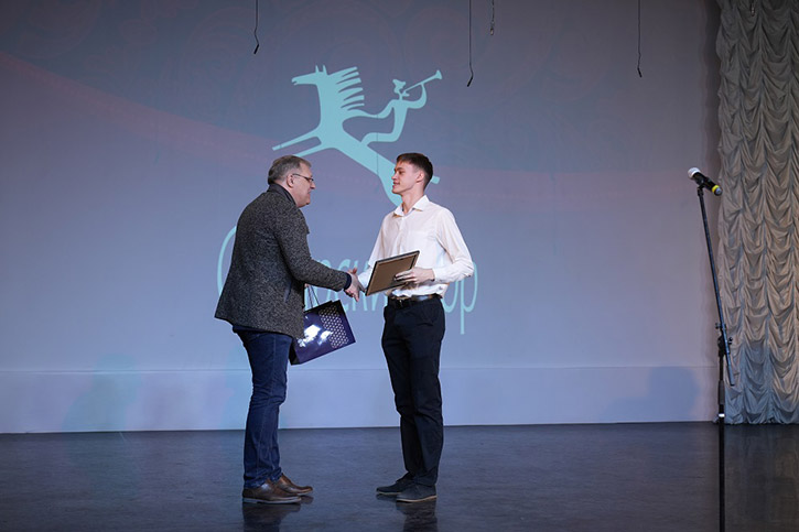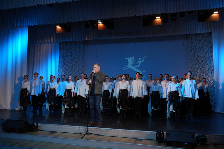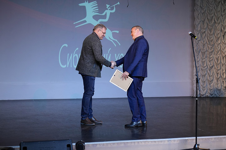 Перед началом концерта художественный руководитель хора Андрей Липихин вручил благодарственные письма директору НОККиИ Аркадию Козиорову, а также преподавателям и студийцам Школы креативных индустрий, которые создали, к юбилею, для Сибирского хора видеоролик с анимированным логотипом коллектива.