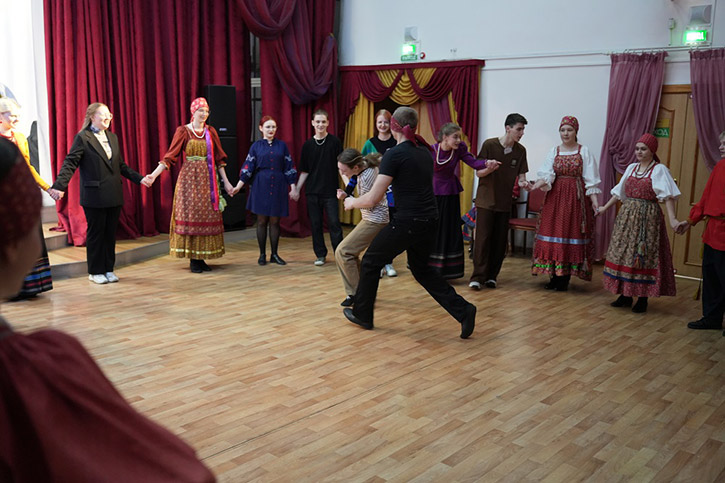 Также, участники "Стартпрофа" побывали на зажигательной "Этнотеке" от фольклорно-этнографического отделения. "Этнотека" пропитана народным колоритом, включает в себя элементы "вечёрок", народные игры, интересные конкурсы. "Энотека" - одно из самых веселых и любимых студентами колледжа мероприятий.