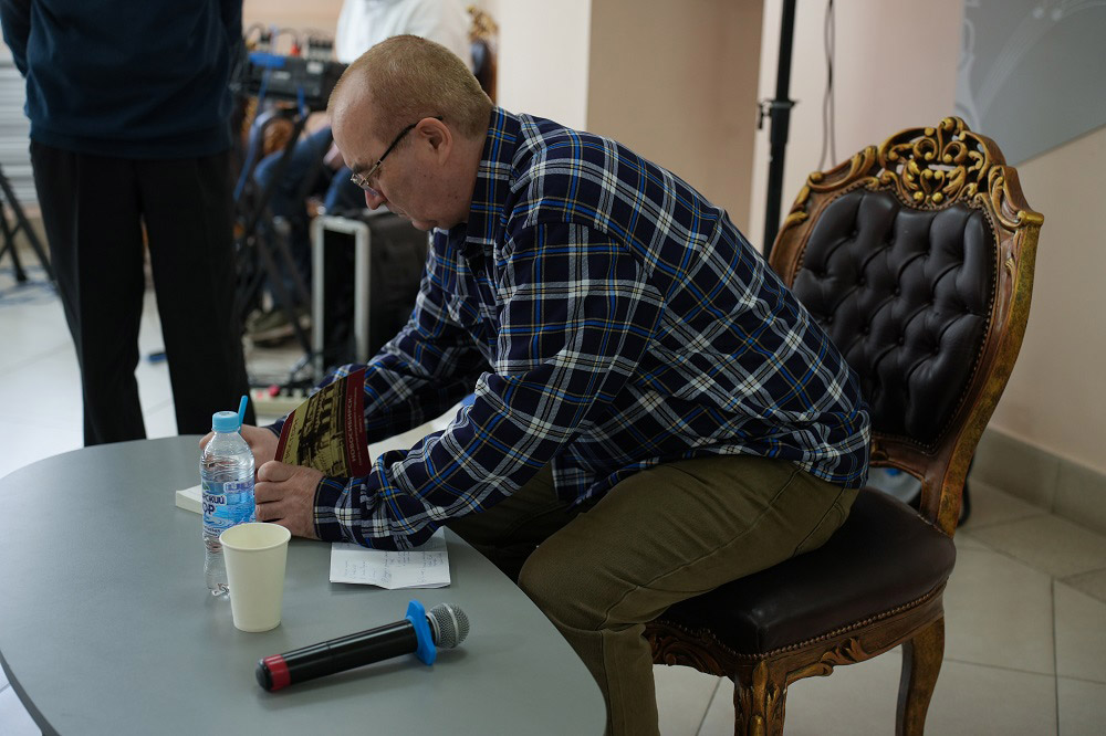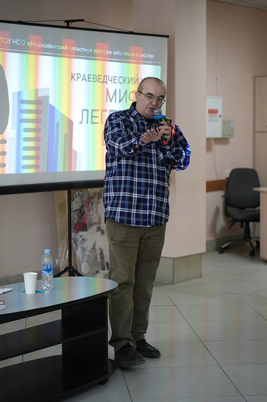 Главным гостем встречи стал Игорь Юрьевич Маранин - краевед, писатель, поэт, историк, автор историко-краеведческих бестселлеров "Мифосибирск", "Город-вестерн" и "Город красного солнца". Он поделился самыми интересными краеведческими историями. Но перед этим у зрителей была возможность поучаствовать в интерактиве на знание мифов родного города. Ведущие озвучивали мифы, из разных уголков страны. Необходимо было с помощью специальных карточек определить, относится ли миф к нашему городу или нет. Выяснилось, что городские легенды знают далеко не все.