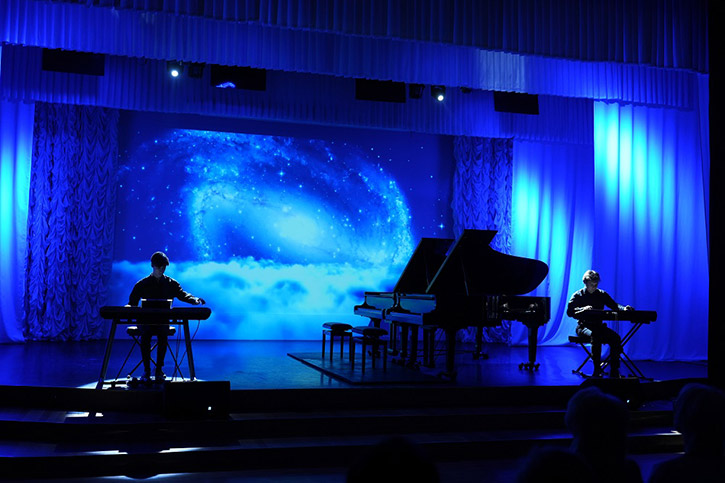 Вниманию зрителей было представлено 15-ть ярких и запоминающихся номеров. Классические хиты и саундтреки из кинофильмов, электронная музыка и фортепианное исполнение. Помимо роялей и синтезатора в концерте были задействованы скрипка и виолончель, звучал потрясающий вокал. Все это сопровождалось эффектным визуальным сопровождением. Игра тени и света, насыщенная цветовая палитра, видеографика - от глубин космоса, до тайн природы.