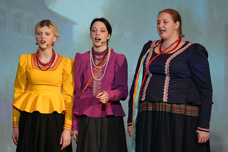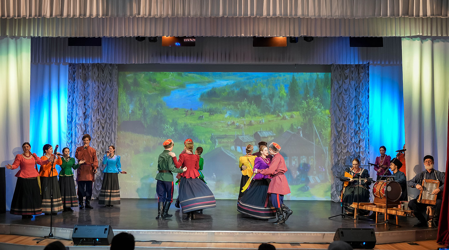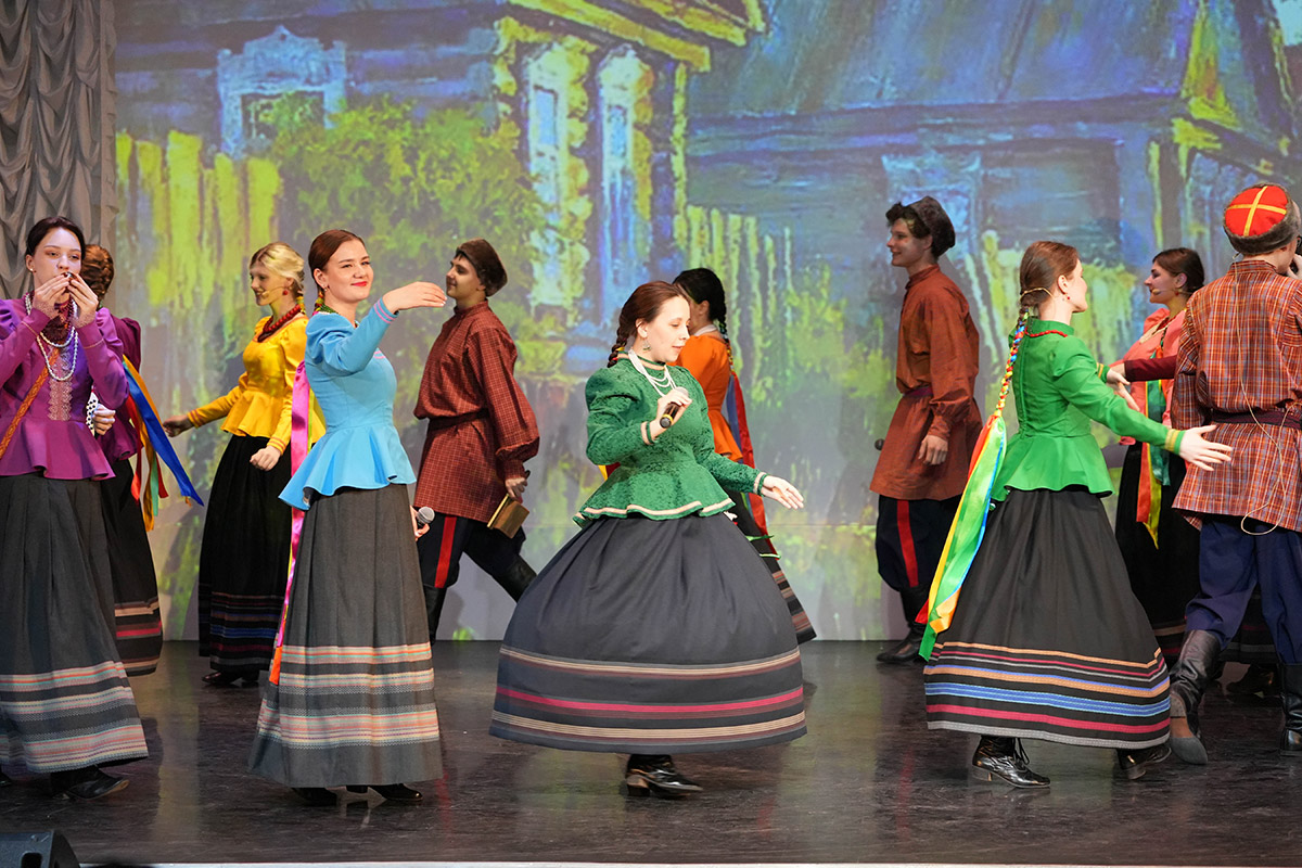 В программе декламировались отрывки из произведений писателя, оттененные ярким фольклорным музыкальным колоритом, погружающим зрителя в атмосферу традиционной деревенской жизни.