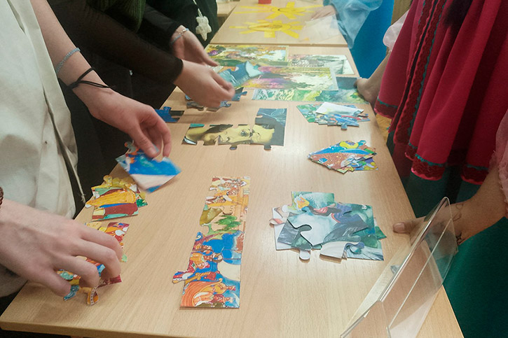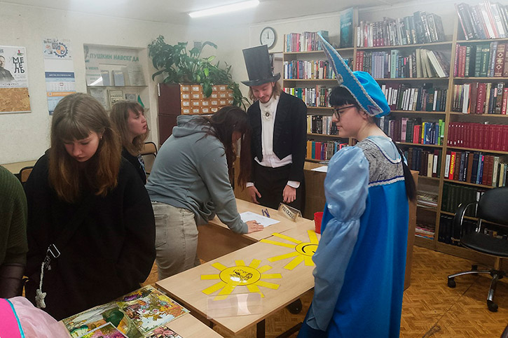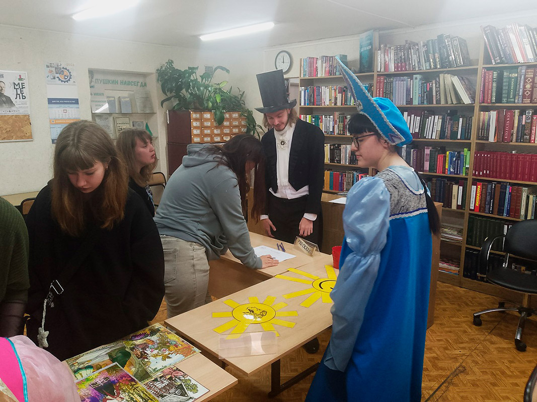 Студенты и преподаватели собирали паззлы с изображением Александра Сергеевича, пытались угадать, Пушкину или нет принадлежит та или иная цитата, разгадывали тематические шарады. Также можно было попытаться угадать героев произведений поэта по изображению без подписи. И конечно звучали любимые стихотворения, написанные Александром Сергеевичем.