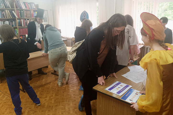Гостям библиотеки было предложено попробовать свои силы на нескольких локациях: "Пушкин? не Пушкин?", "Солнце русской поэзии", "Погадай по Пушкину", "PROСКАЗКИ", "Пушкин, соберись".