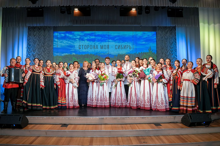 Также с большим успехом прошло концертное представление "Сторона моя Сибирь" от отделения народно-певческого искусства. Со сцены звучали народные сакральные песни с сибирским колоритом, сопровождаемые хореографическими элементами.
