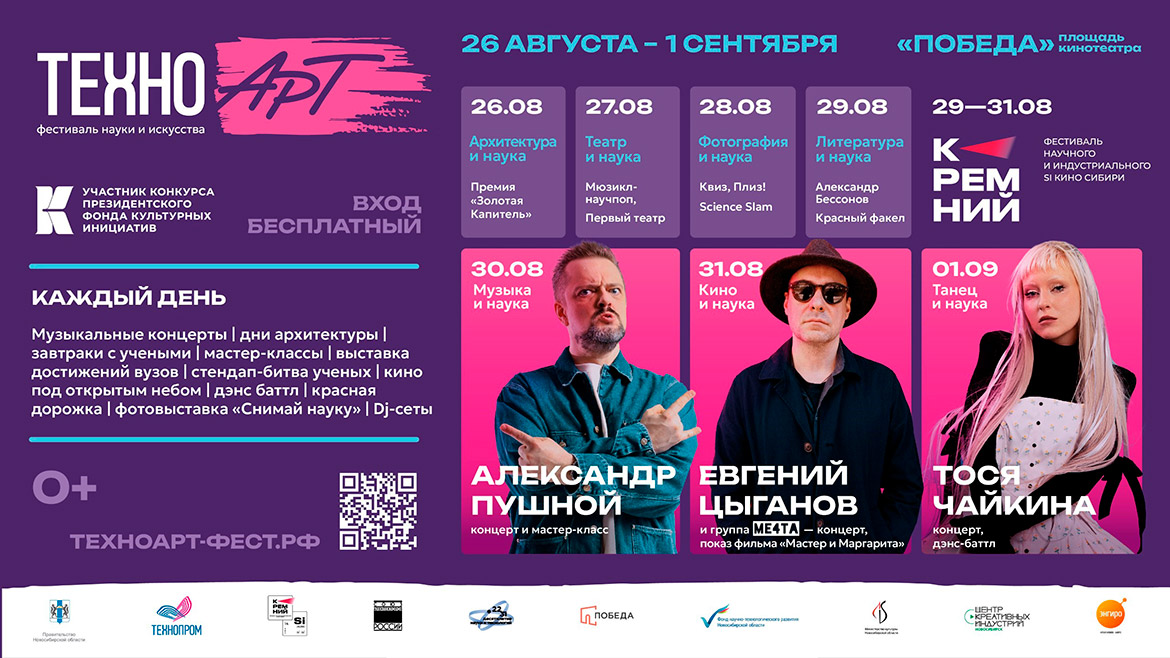 С 26 августа по 1 сентября улица Ленина в центре Новосибирска превратится в главную научно-культурную улицу страны. Завтраки с учеными, театральные спектакли, научпоп-лекции, кинопоказы под открытым небом, интеллектуальные игры, - гости "ТехноАрта" смогут посетить более 50 бесплатных мероприятий.