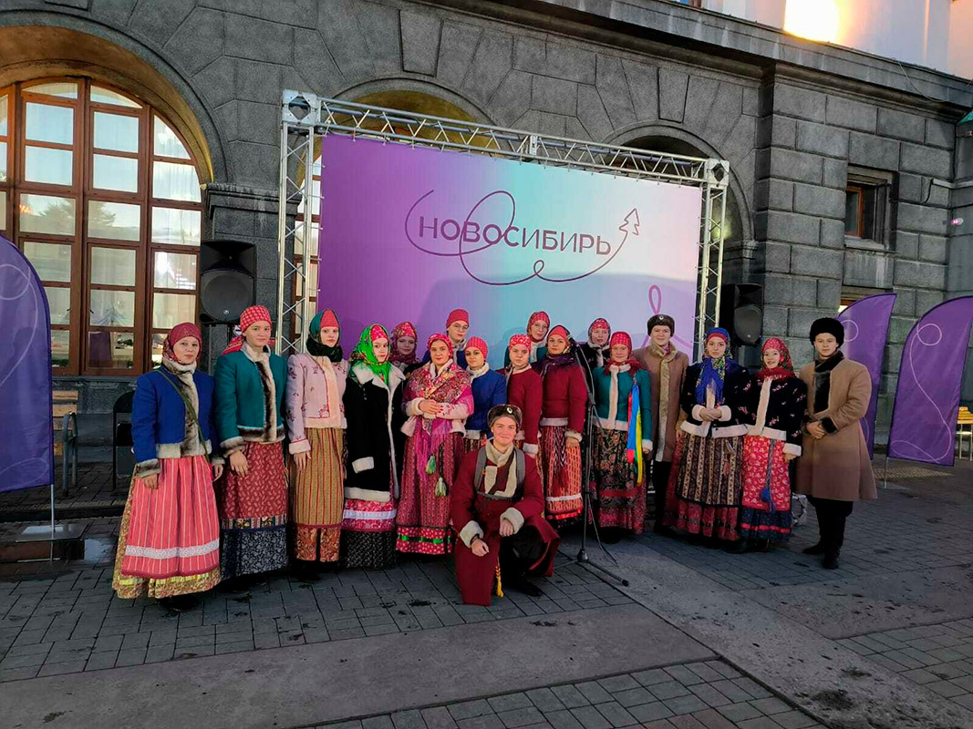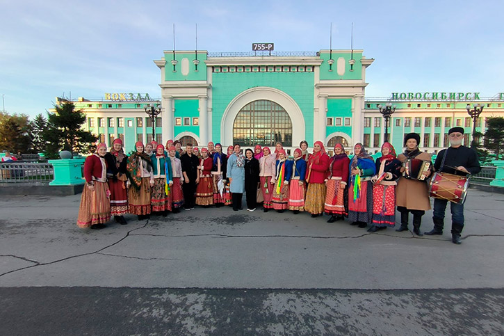Перед пассажирами поезда выступил ансамбль фольклорно-этнографического отделения "Сибирочка".