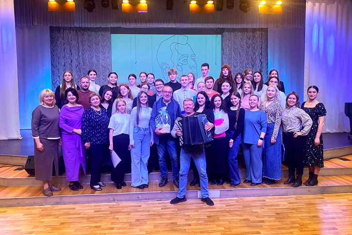 Во второй половине творческой встречи Павел Вениаминович работал с ансамблями и хором отделения народно-певческого искусства. На высоком профессиональном уровне демонстрировал мастерство хормейстера, используя интересные приемы и подходы.