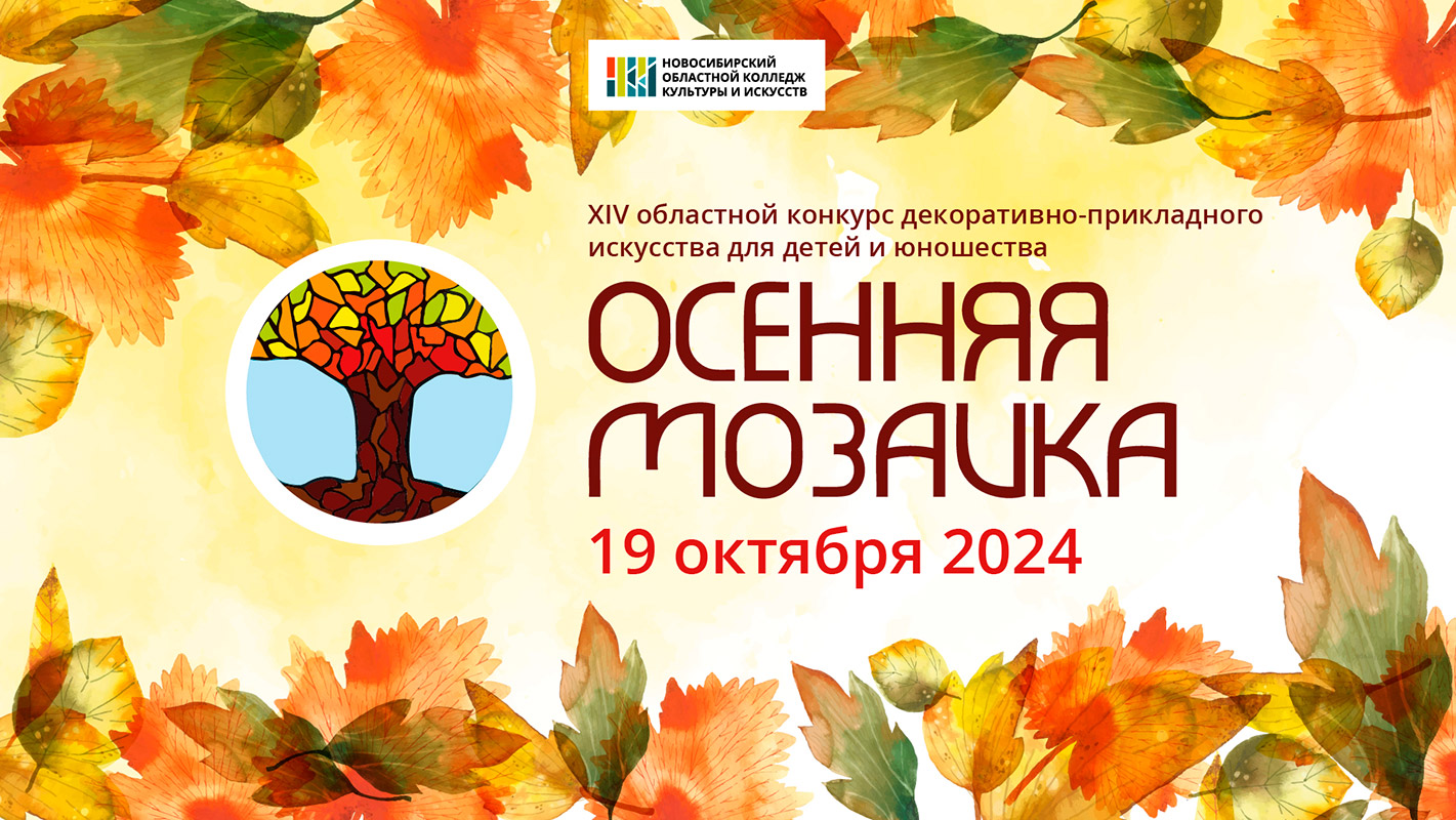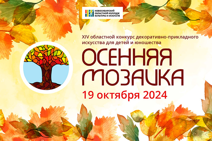 ХIV областной конкурс декоративно-прикладного искусства для детей и юношества "Осенняя мозаика" пройдёт 19 октября 2024 года в Новосибирском областном колледже культуры и искусств. Тема конкурса: "В кругу семьи"