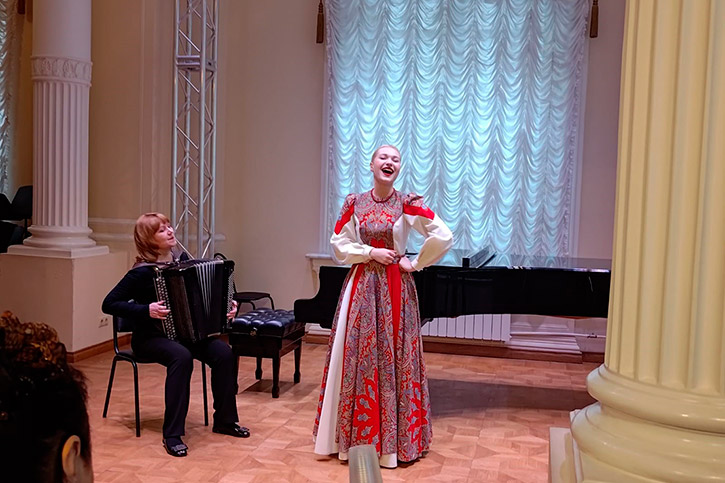 По итогам конкурсных прослушиваний в номинации "Сольное народное пение", в числе победителей оказались студенты отделения народно-певческого искусства НОККиИ. Софья Сенькова стала лауреатом I степени, Екатерина Кретова - лауреатом II степени. Обе вокалистки выступали на конкурсе под руководством своего преподавателя Татьяны Калмыковой. Аккомпанировала победителям концертмейстер Людмила Гришко.