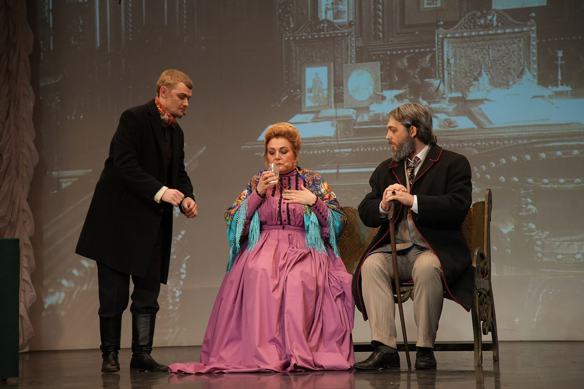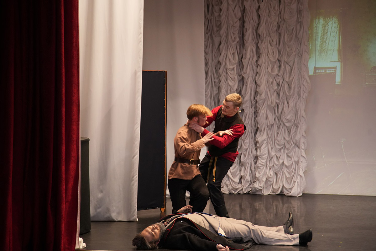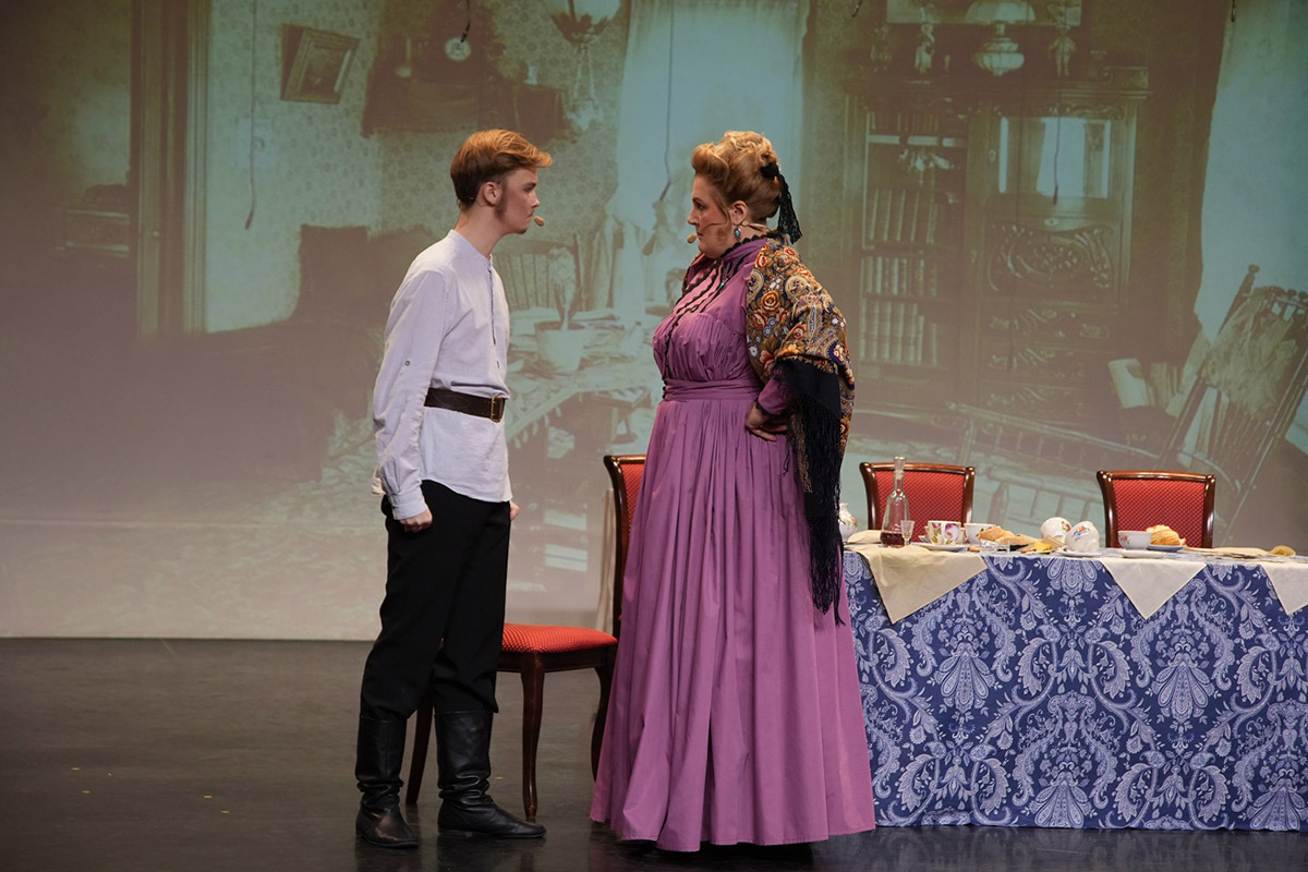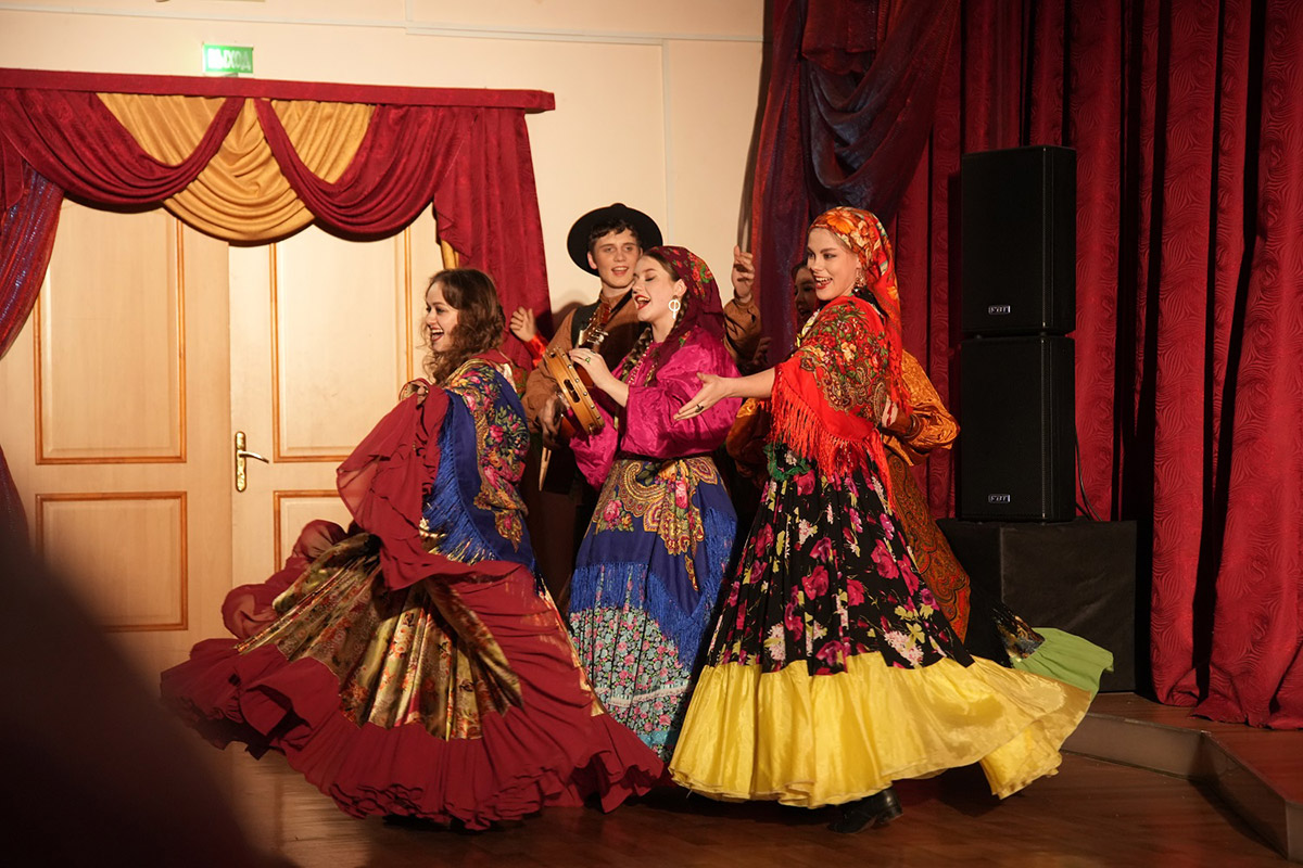 Открыл праздничный вечер фольклорный спектакль "Купчиха", по пьесе преподавателя ФЭО Елизаветы Дорониной. В музыкальной постановке были задействованы преподаватели и студенты отделения.