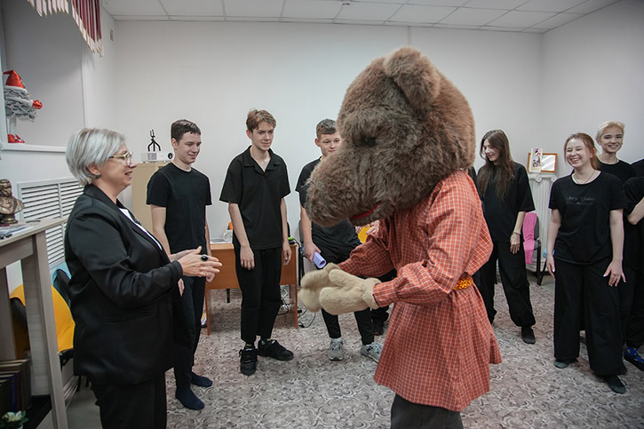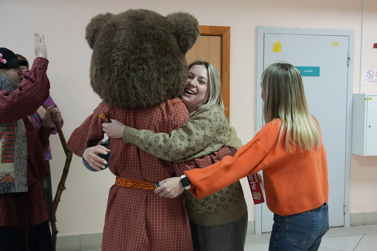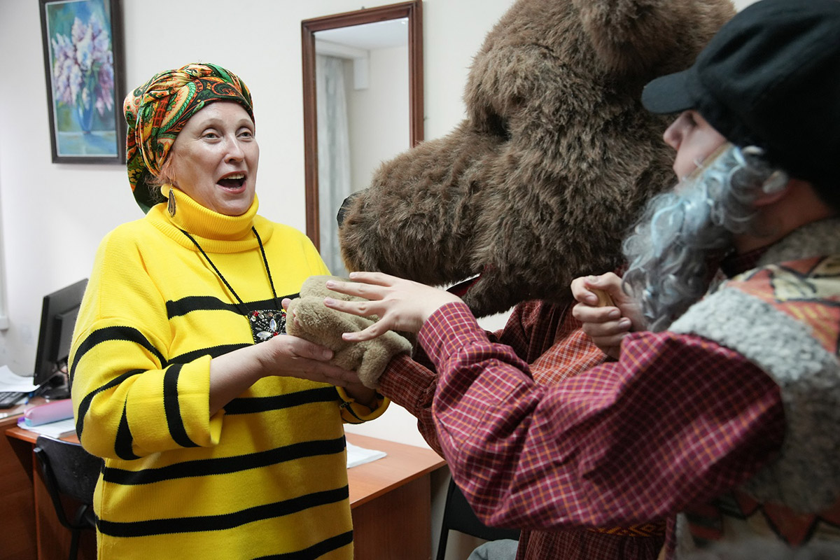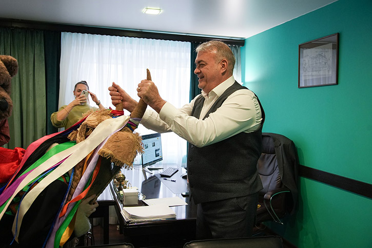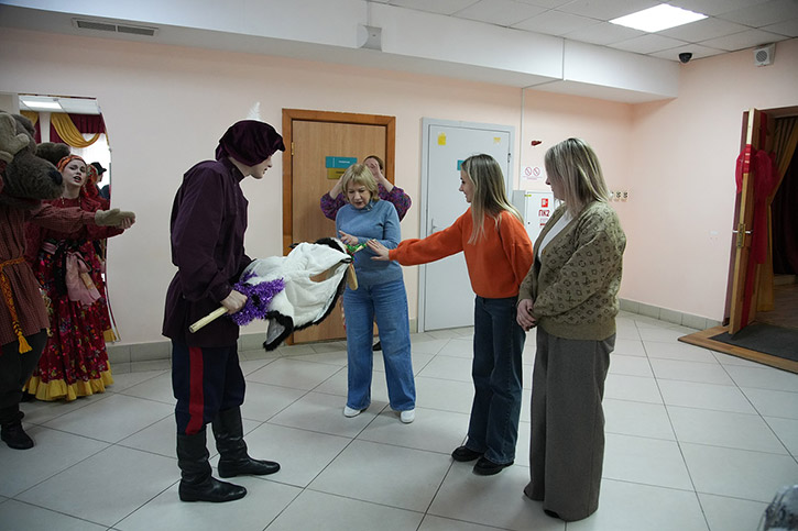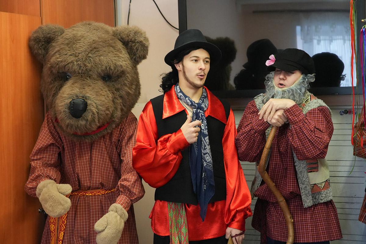 Чтобы год был удачным, тот к кому пришли колядовать обязательно должен потереть рога козы, которая среди колядующих обязательно присутствует, а также погладить ее шерстку. В фольклорно-этнографическом отделении уверяют, что наша коза по-своему уникальна. Ее костюм-образ готовили на основе аутентичных народных описаний. Образ удался, и желающих пообщаться с козой было много. Впрочем, и с медведем обнимались охотно.