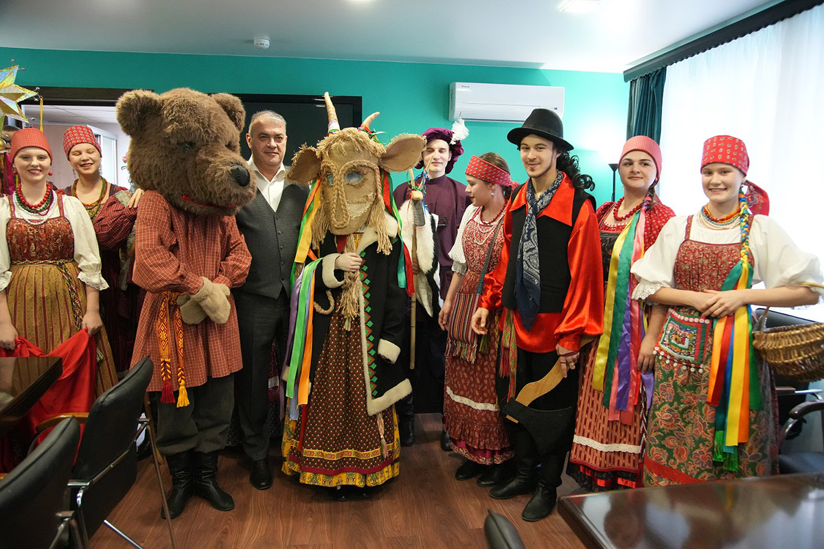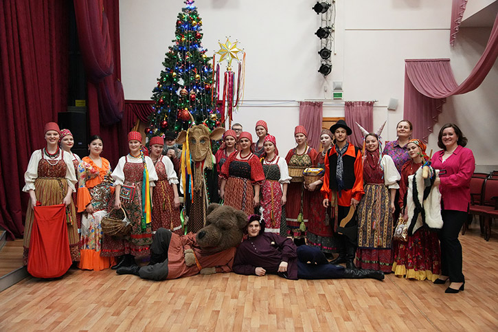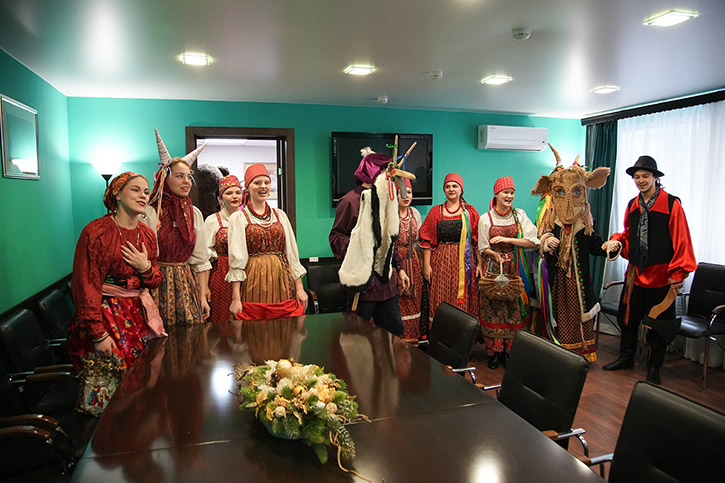 Фольклорно-этнографическое отделение на этой святочной неделе вновь дарит студентам и преподавателям отличное настроение. Уникальная коза НОККиИ также снова колядует.