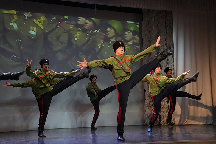 Концертная программа включает в себя творческие номера, посвященные событиям Великой Отечественной войны и современным героям, защищающим нашу страну в рамках специальной военной операции.