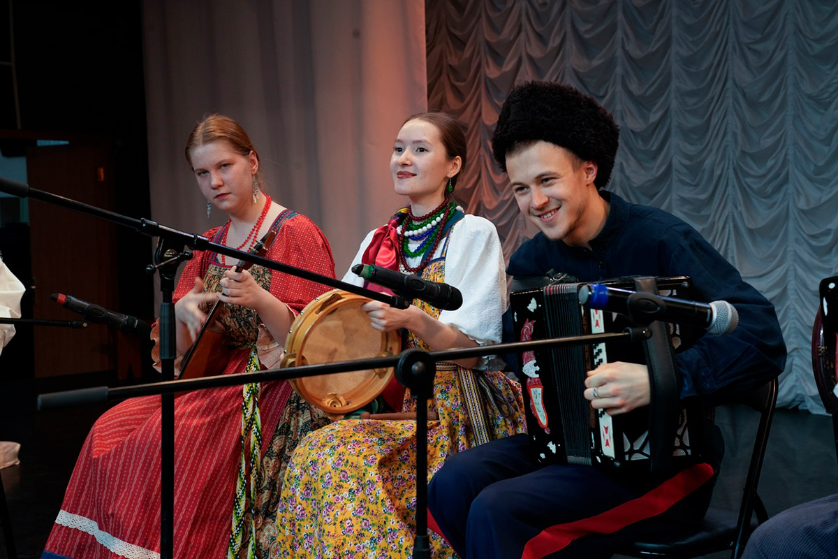 В концертном зале имени Александра Иванова состоялась Масленичная вечерка, организованная студентами и преподавателями фольклорно-этнографического отделения.
