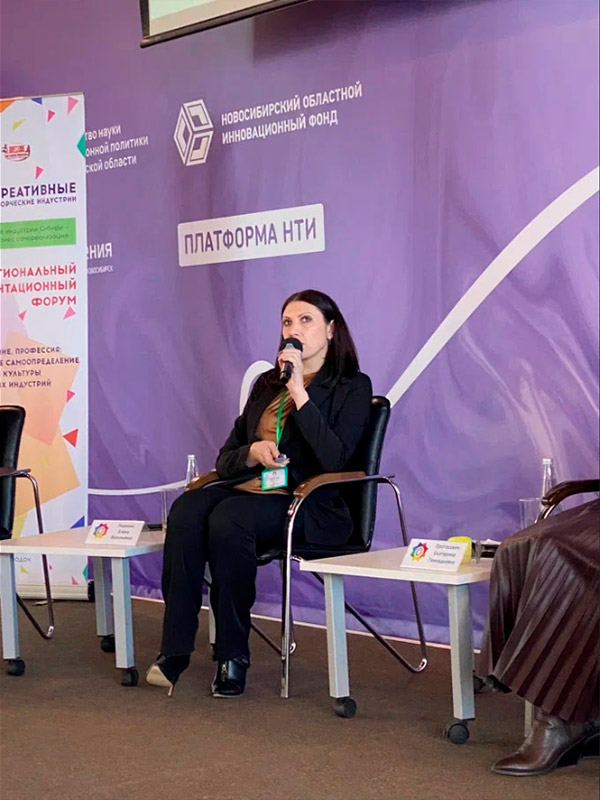В рамках пленарной дискуссии "Предпрофильная подготовка в сфере дополнительного образования. Среднее профессиональное образование: подготовка специалистов творческих профессий" выступили заведующая библиотечно-информационным отделением и руководитель Школы креативных индустрий Елена Васильевна Ляшенко, а также ответственный секретарь приёмной комиссии Мария Анатольевна Бахарева.