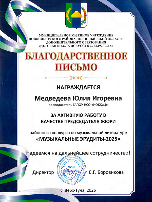 ПЕДАГОГ НОККиИ ВОЗГЛАВИЛ ЖЮРИ КОНКУРСА "МУЗЫКАЛЬНЫЕ ЭРУДИТЫ - 2025"