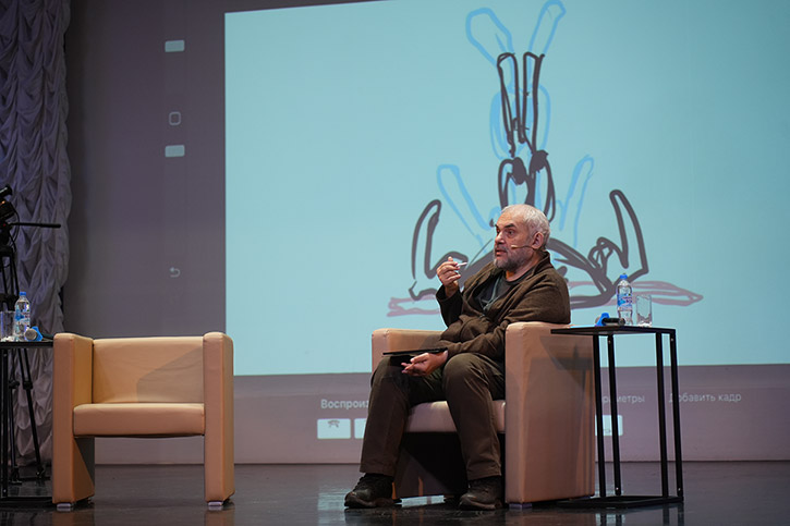 Об основных принципах рисованной анимации в своём мастер-классе наглядно рассказал председатель жюри, президент Гильдии профессионалов анимационного кино Ассоциации анимационного кино России Сергей Меринов.