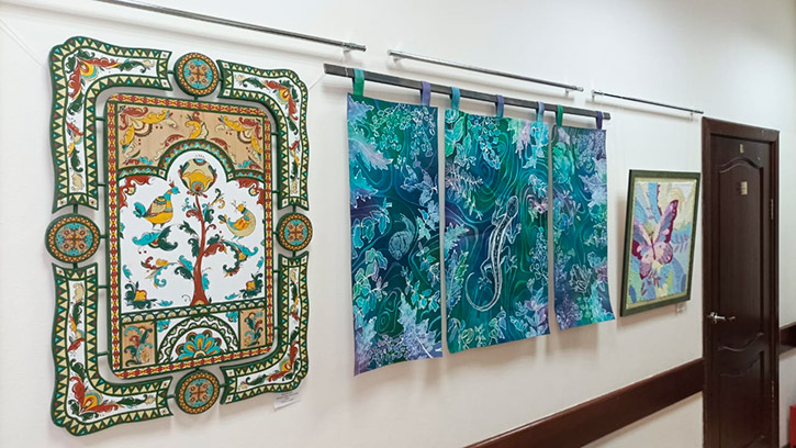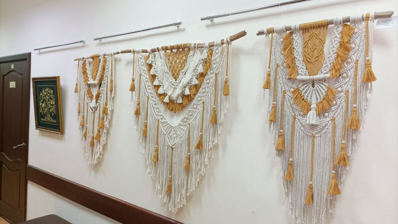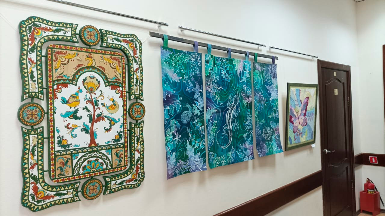 Экспозиция открылась в ДШИ №12. Авторы - студенты отделения декоративно-прикладного искусства колледжа культуры. Работы разных лет: выпускные дипломные и аудиторные. Техника тоже разная: гобелен, вышивка, макраме, батик, роспись по дереву... Выставка будет работать до середины июня.
