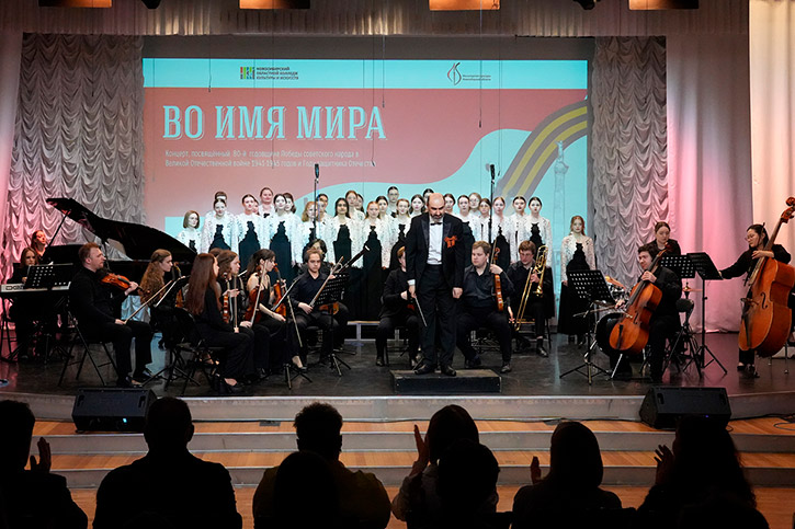 Великой Победе посвящается... Праздничный концерт "ВО ИМЯ МИРА" собрал сегодня в колледже аншлаг. Иначе и быть не могло, ведь День Победы - самый почитаемый праздник страны, который объединяет людей разных поколений. Директор НОККиИ Аркадий Борисович Козиоров в приветственной речи напомнил о важности сохранить и передать память о событиях Великой Отечественной, о героическом подвиге народа на фронте и в тылу...