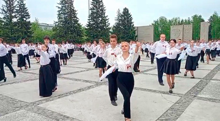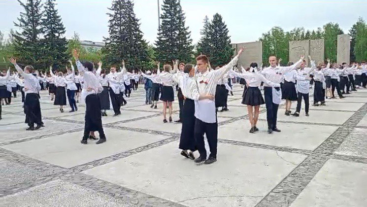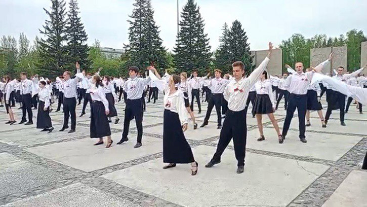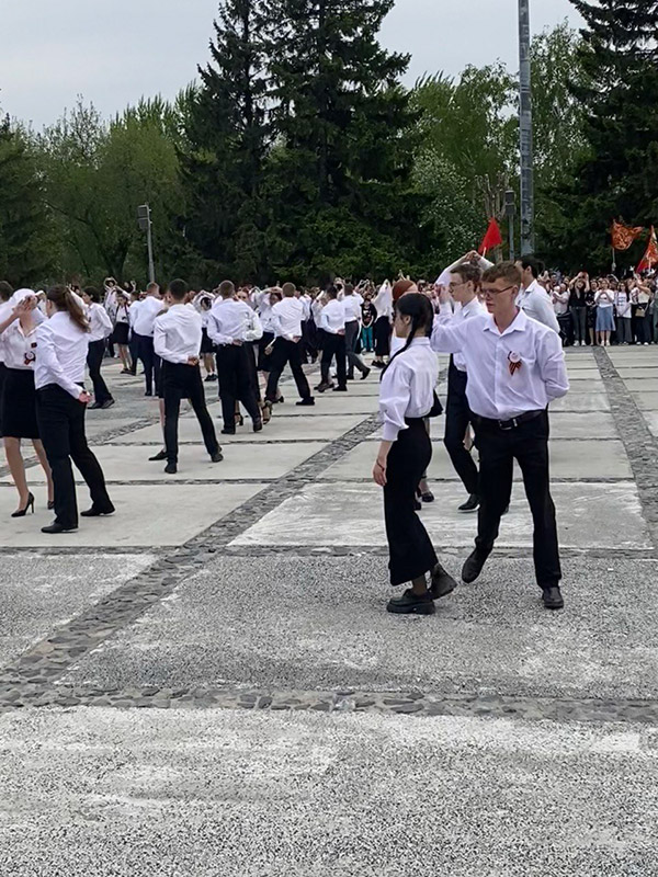 В шесть часов вечера студенты колледжа танцевали "Победный вальс" вместе с другими участниками городского флешмоба. Эта акция прошла на Монументе Славы, который ежегодно становится центром празднования Дня Победы.