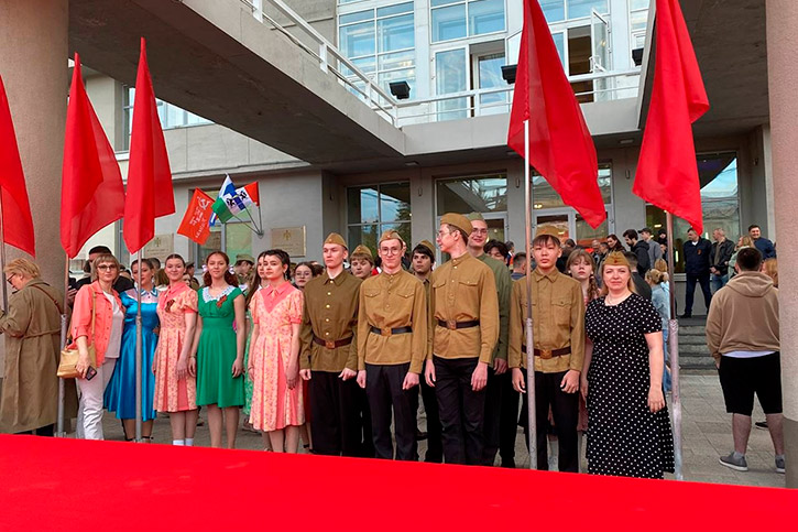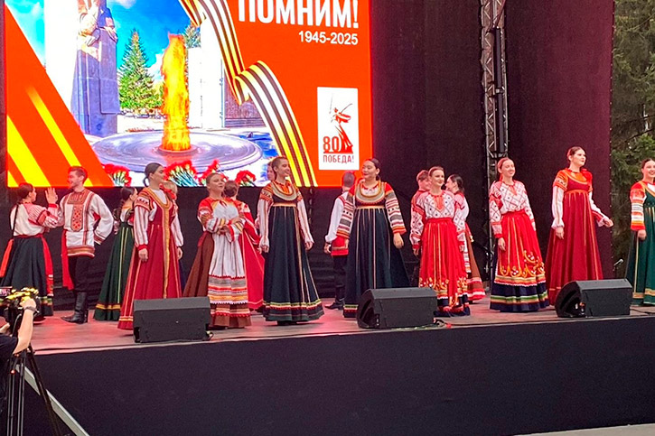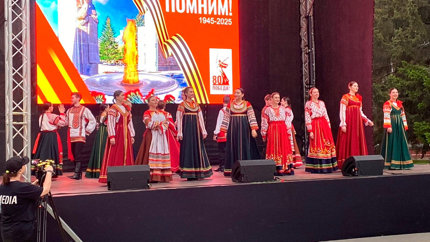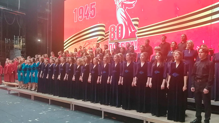 В этом грандиозном событии участвовали 92 студента отделения хореографии и 31 студент дирижёрско-хорового отделения колледжа культуры. Плотный репетиционный график, совместно с другими творческими коллективами города. В концертной программе "Пусть реет Победы знамя!" - 15 уникальных номеров, каждый из которых рассказывает свою историю о Победе. Например, в ярких танцевальных номерах на сцене одновременно было 120 и более артистов, а академический хор колледжа в составе сводного хора исполнил песни "Победа будет за нами" и "День Победы". (ссылка на трансляцию: