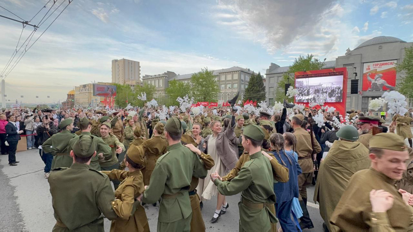 "И город узнал о Победе!" - акция, с которой в Новосибирске ранним утром 9 мая стартовали праздничные мероприятия. В 6 утра на площади Свердлова студенты и преподаватели НОККиИ стали участниками торжественной встречи, чтобы первыми поздравить жителей Новосибирской области с юбилеем Победы и исполнить песню "День Победы". Во время акции участники в костюмах 1940-х годов создали атмосферу того времени. Зрители услышали голос Юрия Левитана, а также выступление Михаила Кулагина, которое 80 лет назад звучало с балкона нынешнего здания Правительства Новосибирской области.