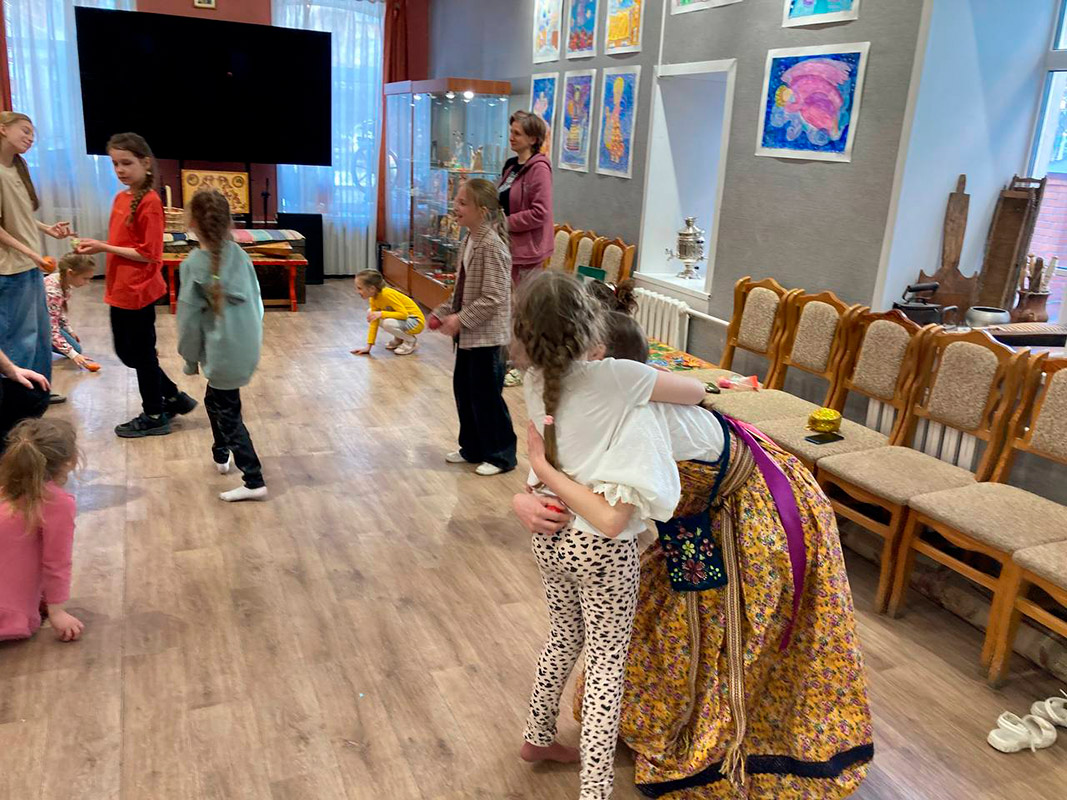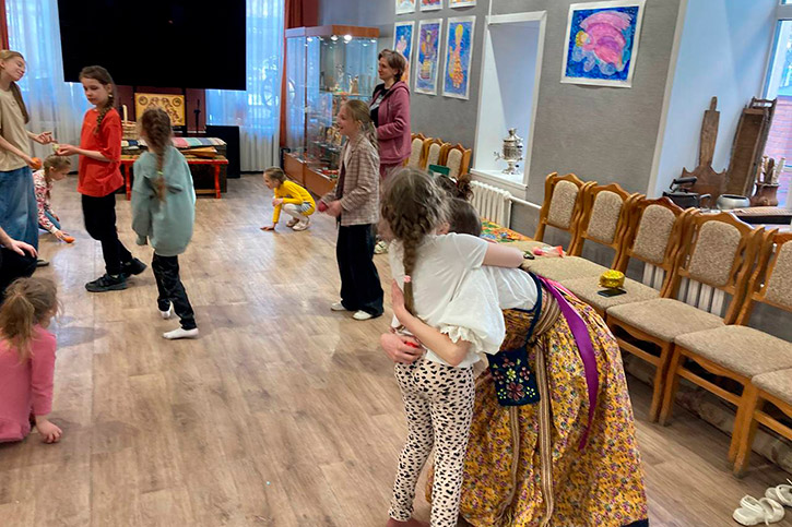 Аня проходит практику в Областном центре русского фольклора и этнографии: занимается с детским фольклорным ансамблем "Воробуши". Например, накануне Пасхи знакомила ребят с традициями праздника: крутили и катали с горок яйца, играли в народные игры "Месим тесто", "Гори ясно", "Гусь", "Водяной", осваивали сибирские танцы...