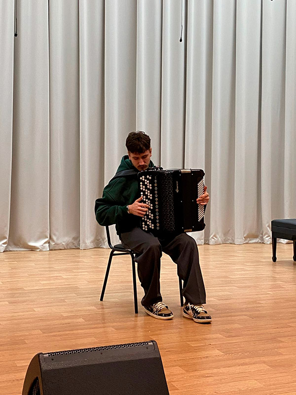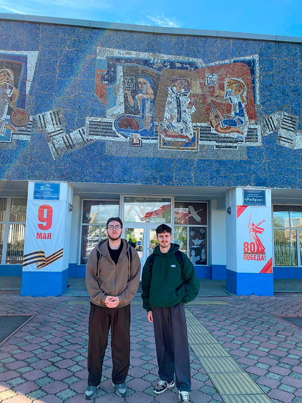 Студентов 4 курса отделения русских народных инструментов Владислава Ефременко и Дениса Нечаенко пригласили в Татарск! Им предложили работу преподавателей по классу аккордеона и баяна в Детской школе искусств "Радуга". Наших студентов на месте тепло приняли. С руководством школы они обсудили детали сотрудничества, нюансы трудоустройства. Владислав и Денис посетили учебные классы, музей и даже оценили новый музыкальный инструмент.