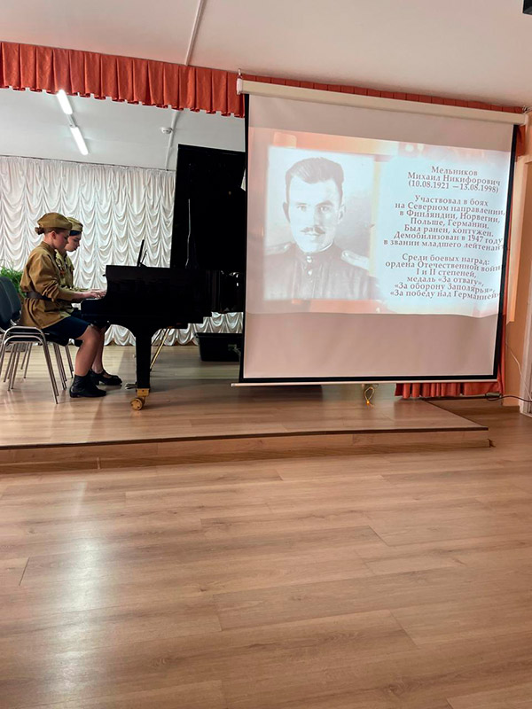 Такие музыкальные встречи стали традицией фольклорно-этнографического отделения. Этот вечер фортепианной музыки - уже пятый. Участвовали студенты и педагоги, а также приглашенные на него друзья и родственники. Тема встречи не только актуальна - "Песни Победы!", но и близка каждому. Поэтому нехватка навыков и техники, а среди студентов ФЭО нет профессиональных пианистов, дело второстепенное. Важно то, что каждое исполнение нашло отклик у слушателей. Ведущая вечера Наталья Борисовна Близневская рассказала об истории создания каждой песни: о поэте, композиторе, исполнителе, о режиссере фильма, в котором прозвучала песня и другие интересные факты. В этом году впервые её рассказ дополнил видеоряд и фотографии Бессмертного полка ФЭО, во главе которого - фото основоположника отделения Михаила Никифоровича Мельникова.