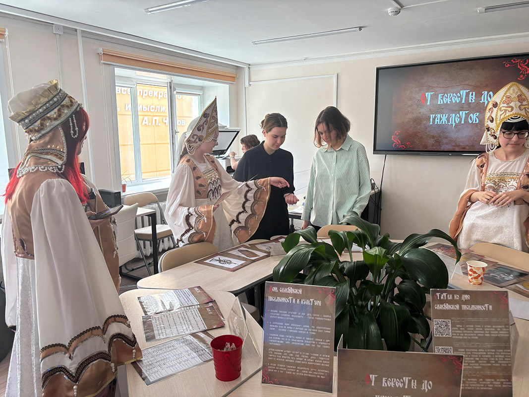 "В эпоху глобализации и массовой культуры особенно важно помнить о своих корнях, о богатстве славянских языков и традиций. Именно поэтому мы решили провести увлекательную акцию "От бересты до гаджетов" для студентов и преподавателей НОККиИ, чтобы прикоснуться к истории создания славянской азбуки и вспомнить добрые традиции, - рассказала Карина Дурновцева, студентка 28 группы БИО. - Участники отправились в познавательное путешествие по четырём станциям, которые посвятили разным аспектам славянской культуры и письменности".
