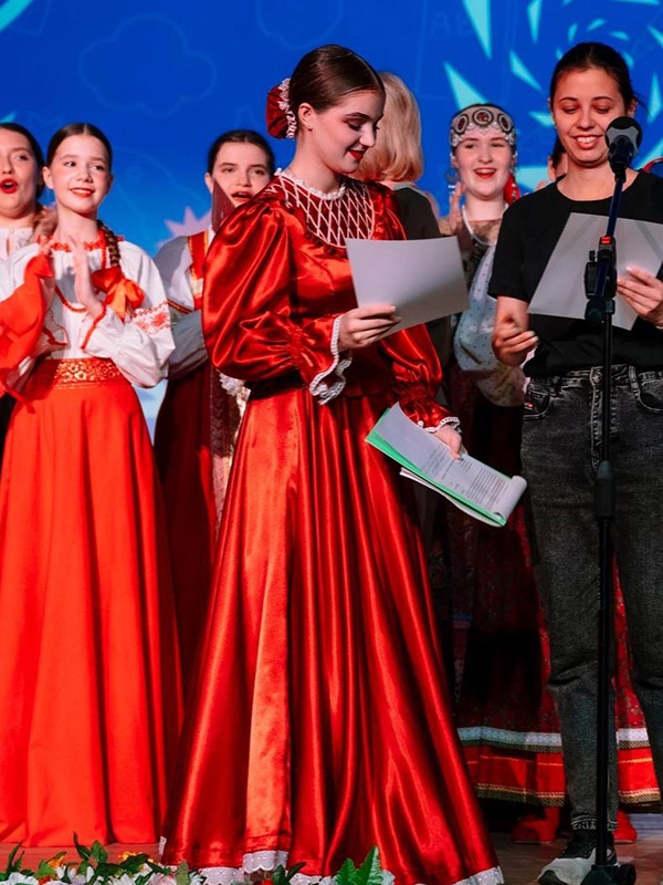 "Я узнала, как заниматься вокалом с детьми разного возраста..." Карина Гиноядова, студентка 4 курса отделения народно-певческого искусства, поделилась своим практическим опытом. Прошлой весной она работала в региональном центре "Альтаир" по образовательной программе "Сольное и хоровое народное пение". Карина и её три однокурсника были волонтёрами.
