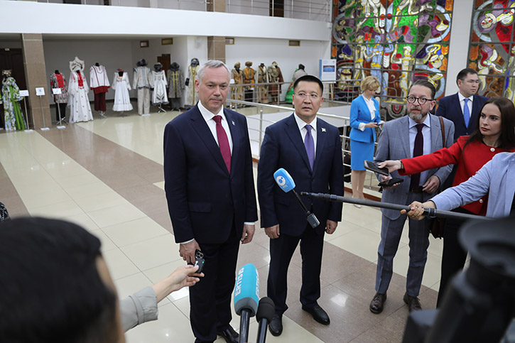 Губернатор Новосибирской области Андрей Травников и аким Павлодарской области Асаин Байханов накануне приняли участие в официальной торжественной церемонии открытия Дней культуры Новосибирской области.
