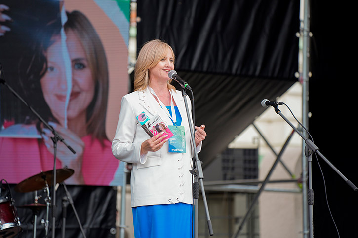 Приветственное слово прозвучало от руководителя проекта Натальи Стригуновой (руководителя ЛИТО "Строки", поэта, заведующего библиотекой, преподавателя библиотечно-информационного отделения).