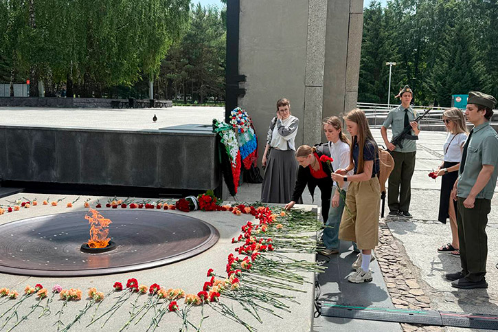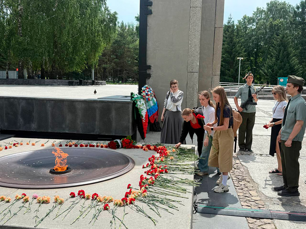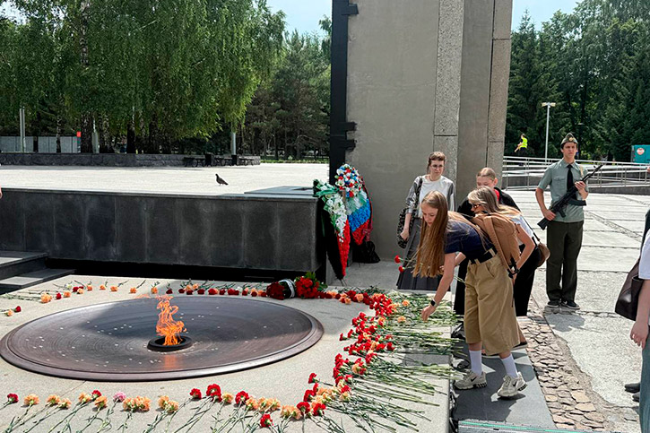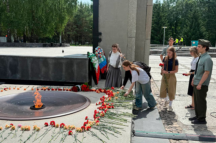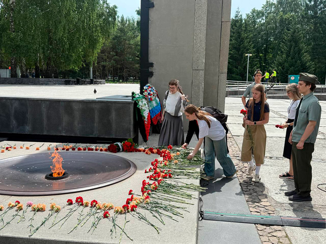 И еще одна традиция - акция "Память поколений". После мероприятия в стенах колледжа - обязательное возложение цветов к Вечному огню на Монументе Славы.