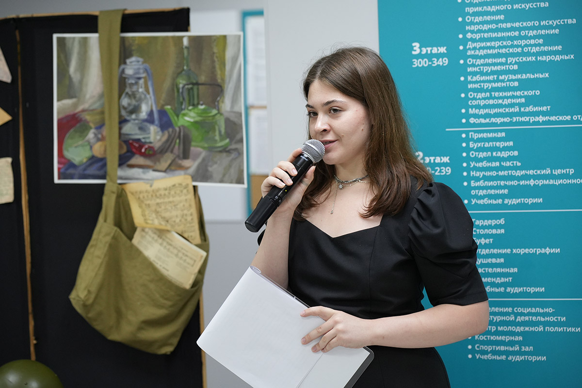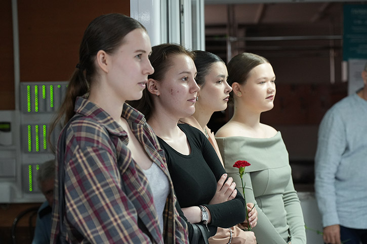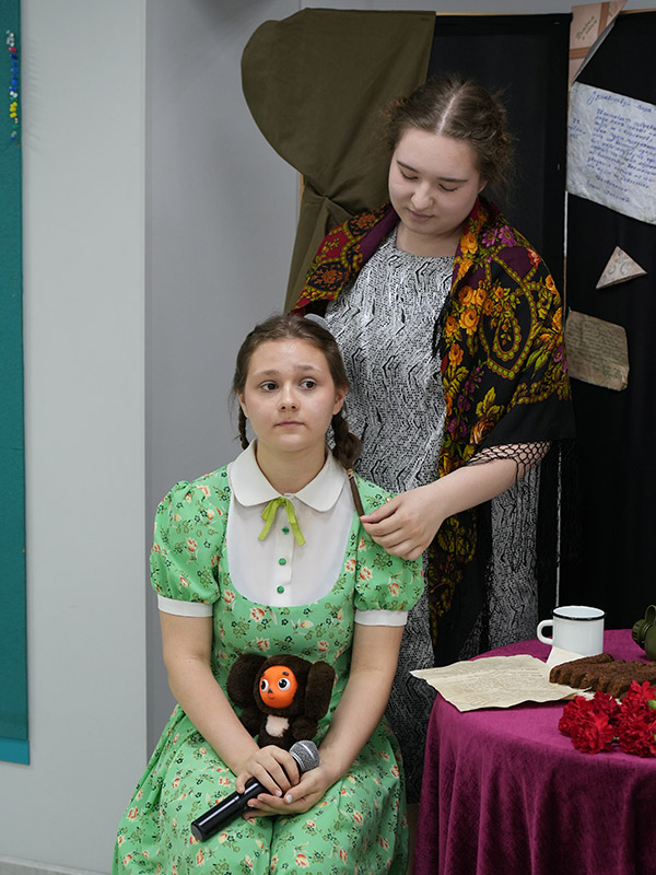 В патриотической акции также принимали участие студенты: Виктория Смирнова (бабушка), Софья Карелова (внучка), Карина Кузнецова (вокалист), Ярослава Федорус (ведущая), Матвей Качура (звук).